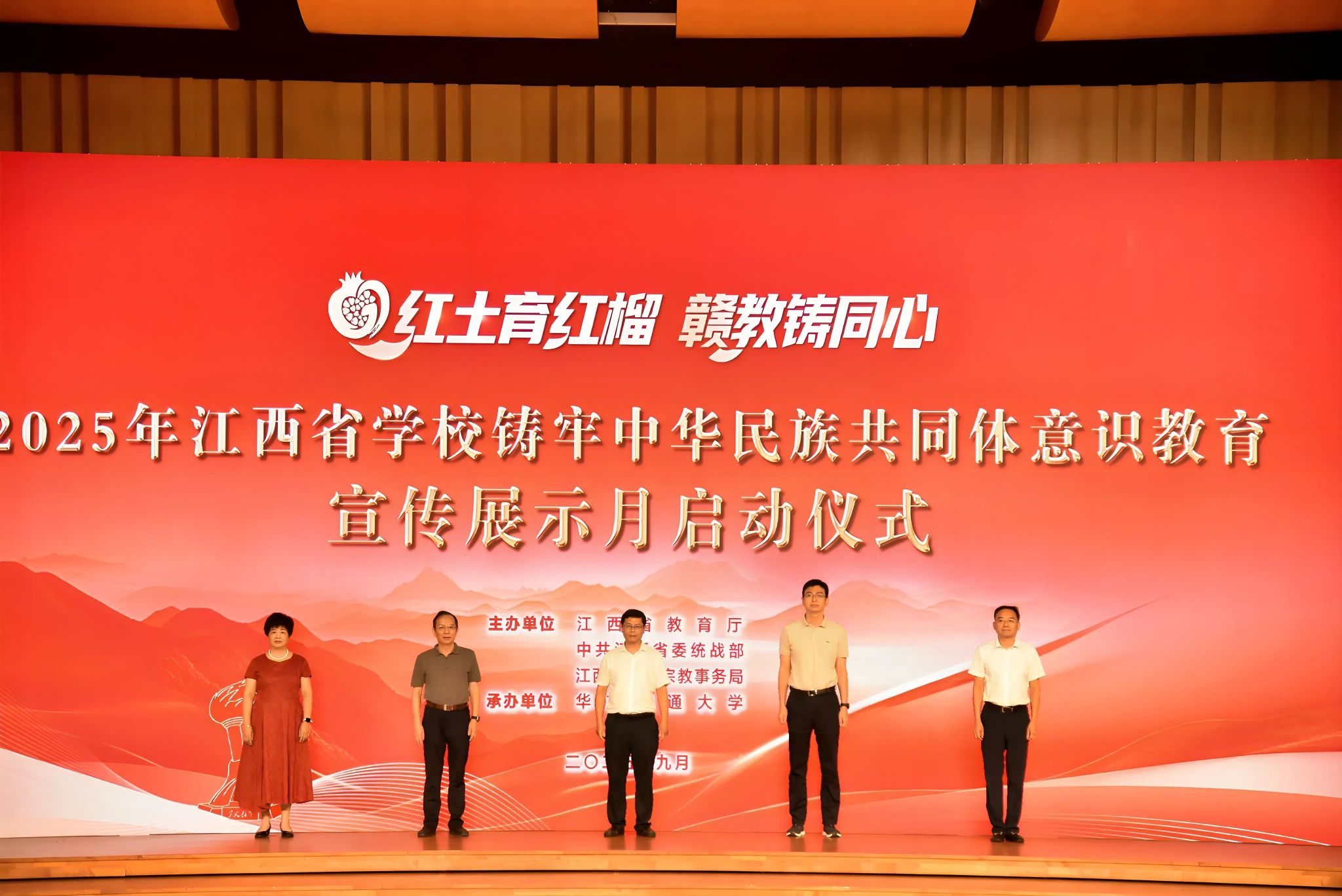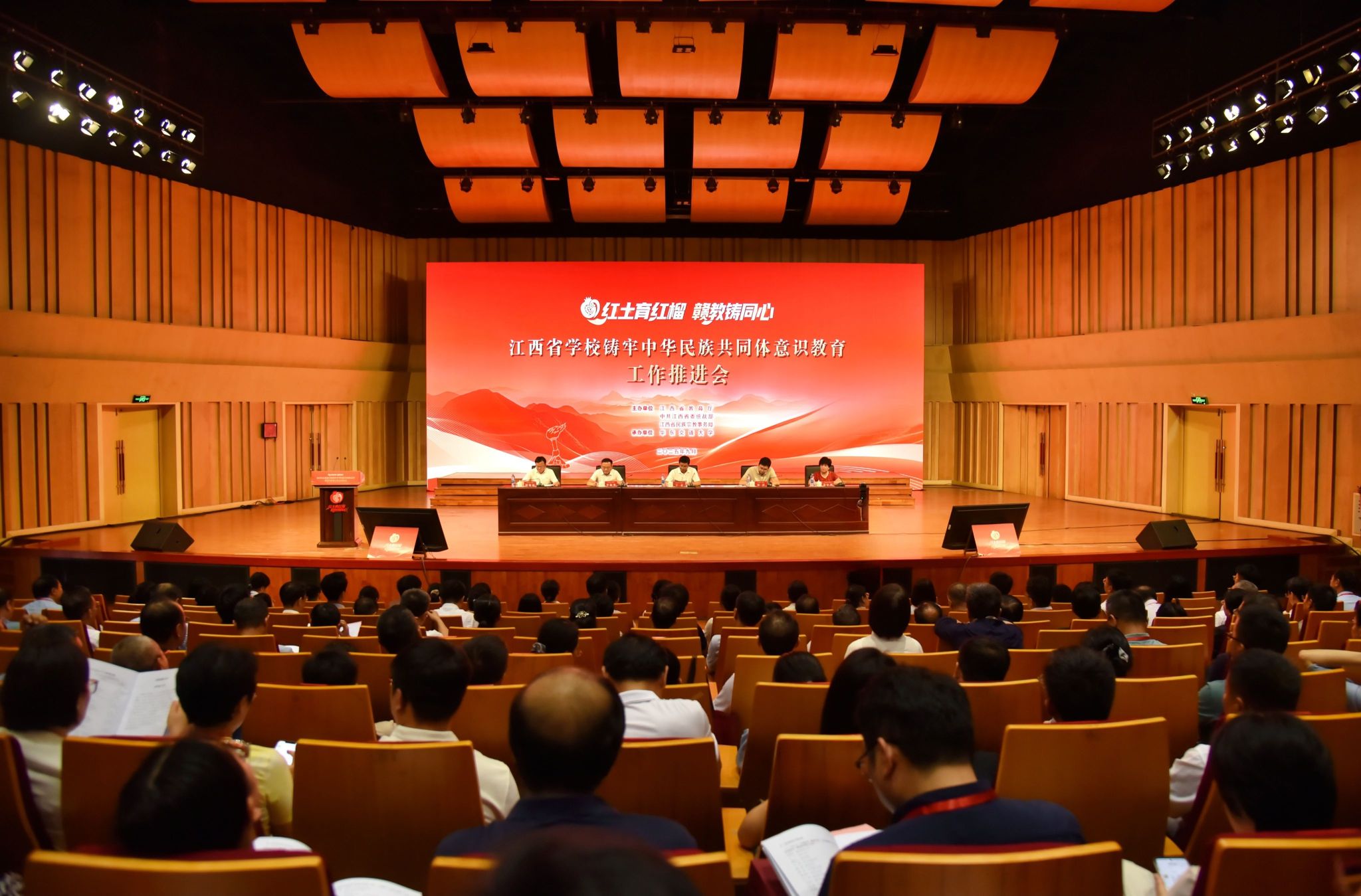 9月16日,由江西省教育厅、中共江西省委统战部、江西省民族宗教事务局主办,beat365官网承办的2025年江西省学校铸牢中华民族共同体意识教育宣传展示月启动仪式暨推进会在南区音乐厅举行。教育部民族教育司综合处处长刘洋,省委教育工委委员、省教育厅副厅长王勇,省民宗局党组成员、副局长李新华出席并讲话,省委统战部二级巡视员余小鸿主持,beat365官网党委书记柳和生致辞,校党委委员、副校长杨德敏出席会议。