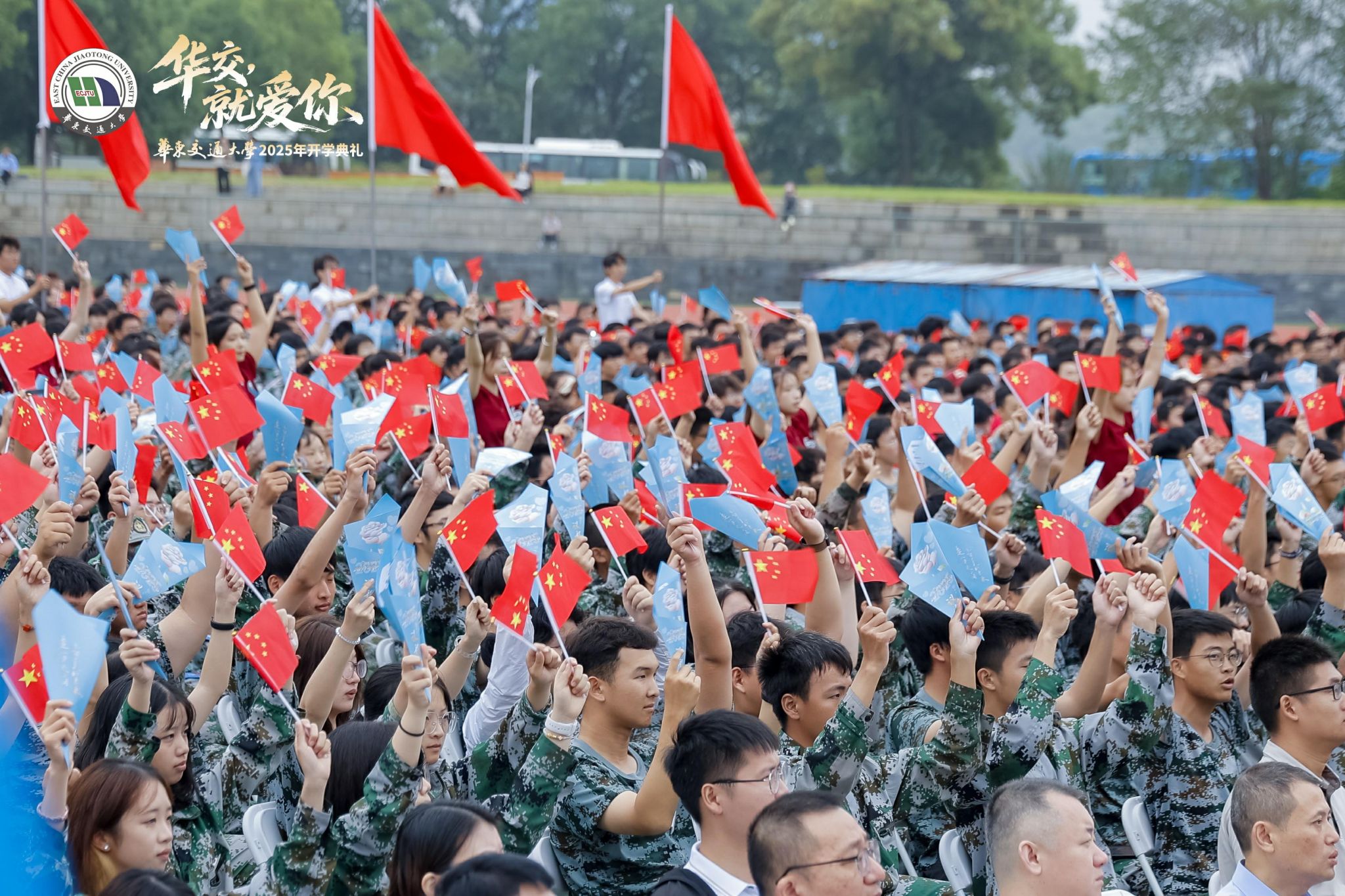 典礼上,歌舞《青春遇见华交》生动演绎了学子与华交相识相知、共同成长的故事。最后,全校师生携手共唱《光芒》《歌唱祖国》,以此纪念中国人民抗日战争暨世界反法西斯战争胜利80周年。