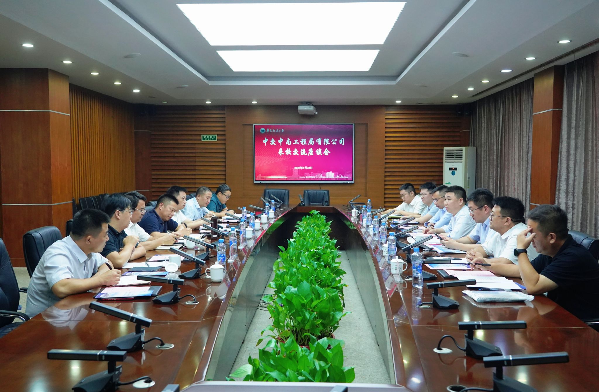9月23日下午,中交一公局集团党委委员、副总经理,中交中南工程局有限公司(以下简称“中交中南局”)党委书记、董事长刘拥华,中交中南局党委委员、副总经理王海涛一行来校交流。校党委副书记、校长徐长节出席座谈会并讲话。校党委委员、副校长肖乾主持。