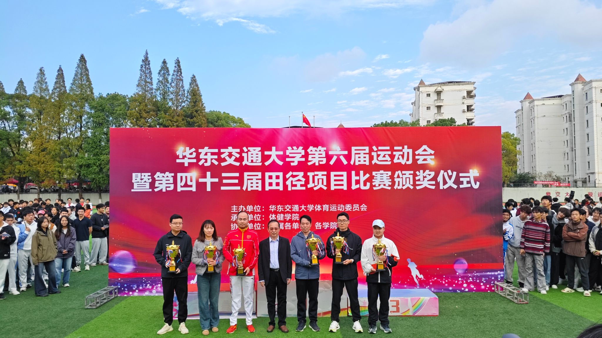 赛场争锋展锐气,拼搏奋进正当时。10月29日至31日,为期3天的第六届运动会暨第四十三届田径项目比赛圆满完成各项赛程。在家校领导出席闭幕式,并为获奖团体及个人颁奖。
