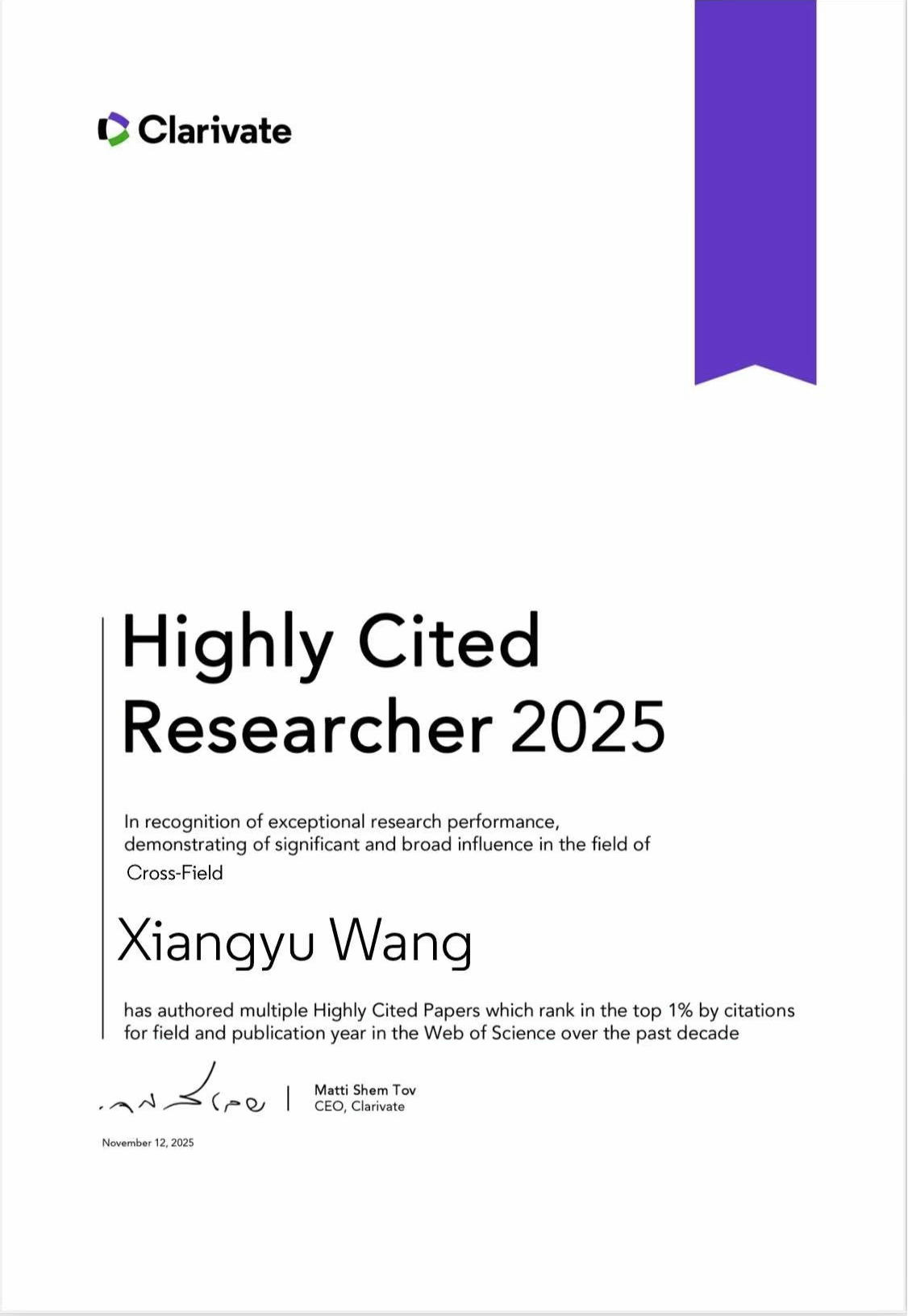 本次"全球高被引科学家"评选覆盖全球60个国家和地区、1300多家机构,仅6868名科学家入选,入选者的研究成果在Web of Science核心合集中被引频次位居本学科领域全球前1%,代表了该领域的顶尖学术水平。王翔宇教授的入选,标志着其研究工作已达到国际领先水准,为学校在相关学科领域的发展奠定了坚实的人才基础。