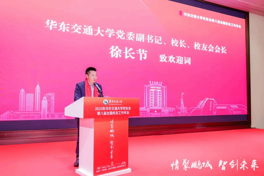 徐长节代表学校对校友会第八届全国校友工作年会的召开表示热烈祝贺,向远道而来的各地校友表示诚挚欢迎,向长期关心支持母校发展的校友们和用心服务校友工作的同志们表示衷心感谢,并简要回顾了学校的发展历程以及学校近年来取得的成绩。他指出,学校的发展离不开校友们的帮助和支持,每一步的跨越都汇聚着校友们的磅礴力量,希望广大校友一如既往地支持母校发展。他强调,做好校友工作,要织密“联络网”,让组织更有力;要搭好“连心桥”,让服务更有爱;更要建好“校友圈”,让联结更有效。他代表学校发出诚挚邀请,热切欢迎和期盼广大校友2026年共赴母校为建校55周年庆生。