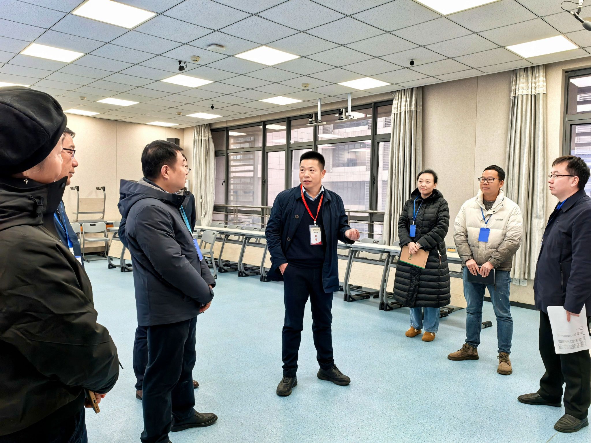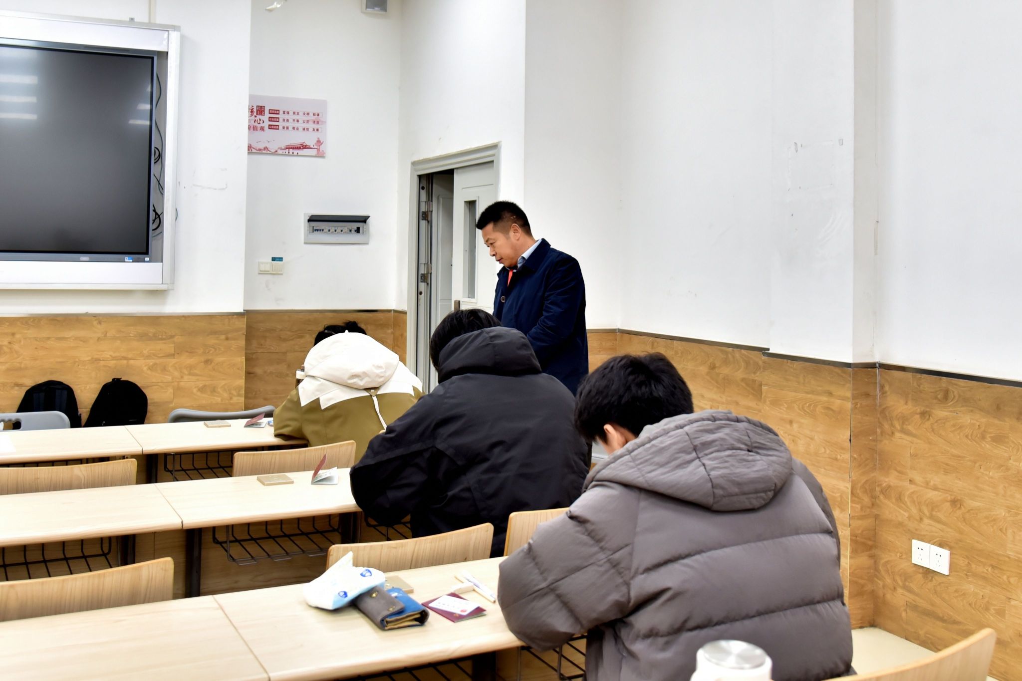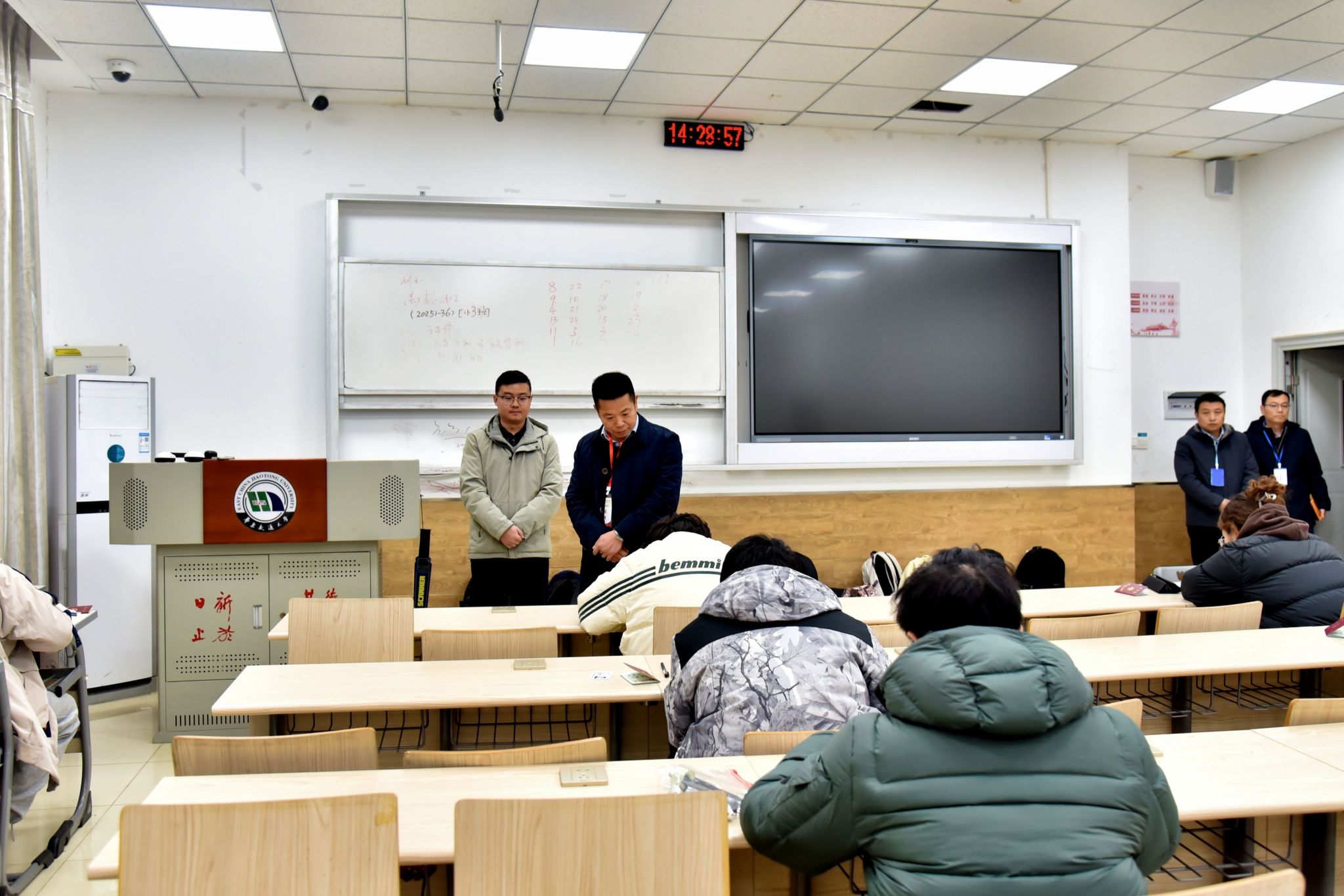 徐长节来到教25栋,现场了解了考场环境、纪律维护、监考人员履职和学生应考状态,督促监考教师认真履行工作职责,确保考试公平、公正,防范和杜绝考试作弊等违纪行为。