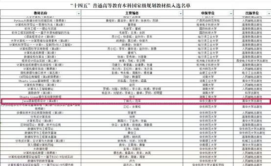 近日,教育部公布“十四五”普通高等教育本科国家级规划教材拟入选名单,beat365官网信息与软件工程学院丁振凡教授主编的教材《Java语言程序设计(第4版)》成功入选。