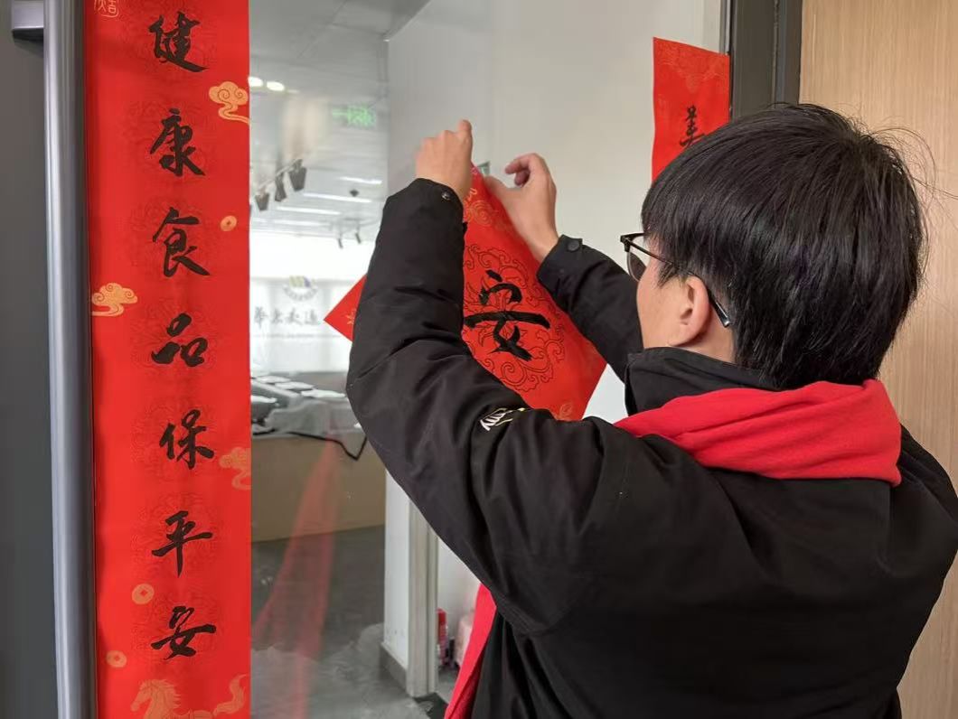 活动现场设置的AI春联生成与现场挥毫环节成为一大亮点。同学们结合专业特色与新年心愿,通过AI工具生成个性化春联内容,或亲手书写,或邀请老师题字留念。师生共同为学校创作的AI春联现场书写完成,定格下兼具文化底蕴与纪念意义的美好瞬间。
