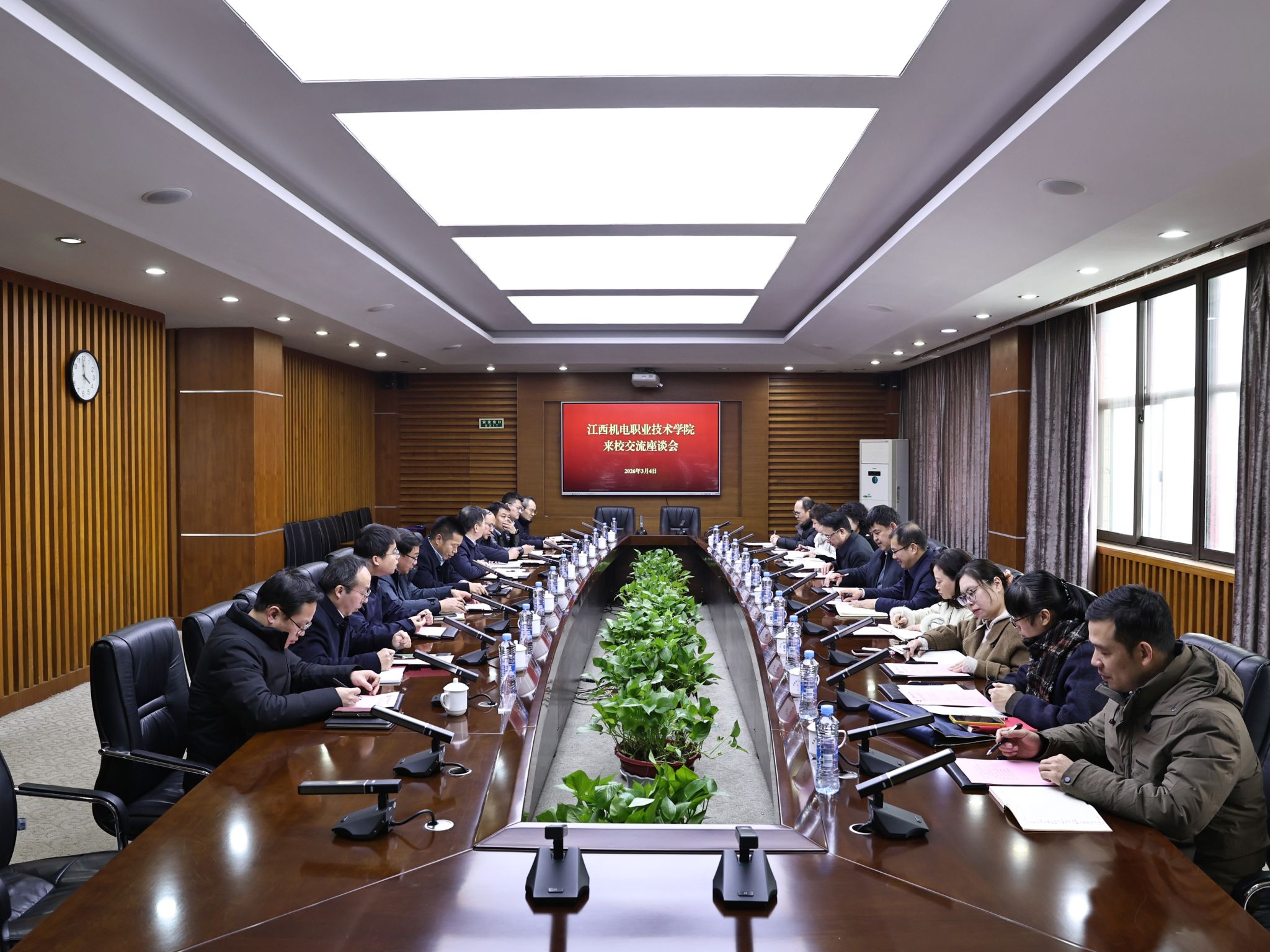 3月4日下午,江西机电职业技术学院党委书记季强,党委副书记、院长刘永胜,党委委员、副院长朱林一行来校交流座谈。校党委副书记、校长徐长节出席座谈会。校党委委员、副校长黄志超主持会议。