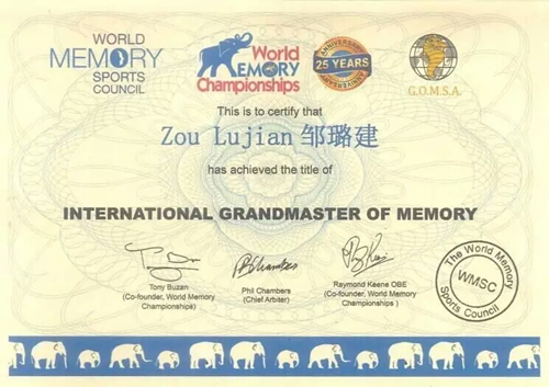 2016年,邹璐建曾以4106分的高分斩获第25届世界记忆锦标赛南昌城市赛冠军,以6125分获得第25届世界记忆锦标赛中国总决赛第五名,囊获了中国记忆冠军、两个单项记忆亚军与一个单项记忆季军。