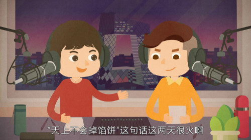 甲:Hello,我的朋友,2016年已经过去了,哎你知道吗,天上不会掉馅饼这句话这两天现在很火啊