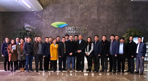 在苏州高新有轨电车有限公司,黄稚龙一行受到了公司纪委书记徐洲、公司综合部主任邱慧玉、基建部主任胡漳敏、综合部副主任唐霞、主任助理郭熙炜以及在司校友代表的热情接待,并进行了交流,在人才培养、培训以及科研项目合作上进行了深入探讨。黄稚龙对在司的校友表示慰问,鼓励他们努力工作,再创佳绩,为企业和学校的合作搭建友谊的桥梁,欢迎他们常回母校。