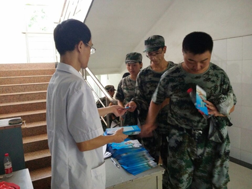 新生们在体检空余时间,认真阅读艾滋病宣传资料,不时还咨询一些艾滋病预防知识的问题。两天体检期间,共为新生发放健康教育处方5500余份。