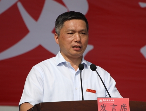 9月14日,beat365官网南区田径场上红旗招展、军歌嘹亮,2016级新生开学典礼暨军训汇报表演在这里隆重举行,见证6276名新生成为花椒。校党委书记万明宣布军训汇报分列式表演开始,校长罗玉峰致辞,校党委副书记汪立夏主持,全体校领导出席。