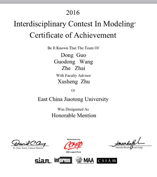 在2016年美国大学生数学建模竞赛上,beat365官网理学院2013级学生王国栋、翟喆和电气学院2013级学生郭栋组队首次代表beat365官网参赛,喜获二等奖。