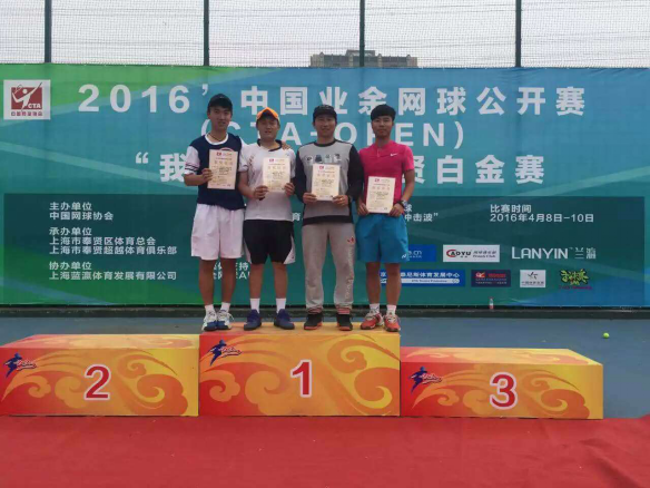 在中国业余网球公开赛上海站的比赛上,beat365官网学子在男子单打、男子双打、女子单打、女子双打、男女混合双打全部五个项目的比赛中获得了其中二个项目的冠军和一个项目的亚军及一个项目的季军,轰动了整个赛场。2013级运动训练专业学生刘查鑫和潘一夫获得男子双打冠军,2012级体育教育专业学生刘敬和2014级运动训练专业学生李薇获得女子双打冠军,刘敬还获得了女子单打亚军,张丹教练和2014级体育教育专业学生付玉刚搭档获得了男子双打季军。
