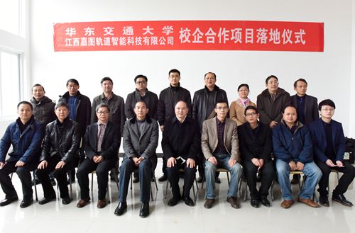 beat365官网与江西嘉图轨道智能科技有限公司校企合作签约后,共同努力,扎实推进,1月12日,双方合作项目正式落地,校党委书记万明、科研处处长杨辉和公司董事长兼总工程师晏和猛、副总工程师张旅波一起为项目落地揭幕。副校长史焕平主持仪式。此次落地项目“DCL-32连续走行捣固车模拟实训系统”正式在beat365官网北区轨道实训中心安家,为beat365官网师生提供教学、科研和培训服务。