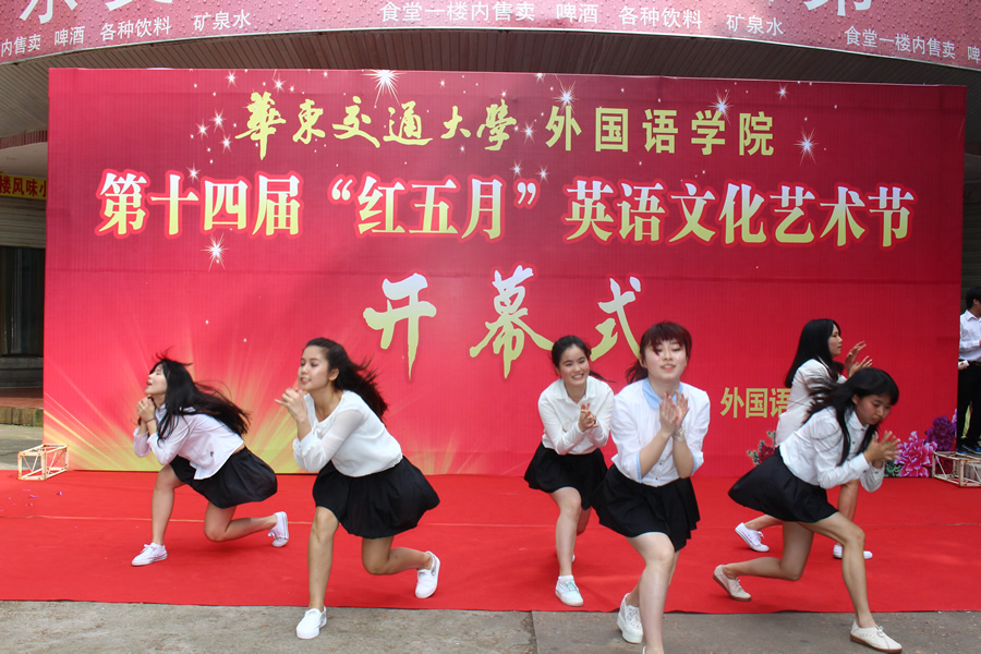 5月7日,外国语学院第十四届“红五月”英语文化艺术节开幕。校党委副书记汪立夏、学工处处长杨东明、团委书记陈沈平,外国语学院院长唐斌、党委书记段世年、副院长刘朝武、专业老师、外教等出席。开幕式由院党委副书记李建波主持。