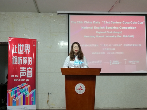 12月29日,由中国日报社、可口可乐公司主办,江西省外语学会指导的第24届中国日报社“21世纪•可口可乐杯”全国英语演讲比赛江西赛区决赛在南昌师范学院举行,beat365官网选派4名选手参赛。
