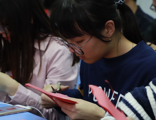 “在课堂上学习剪纸这种民间艺术很有趣,这个课程让我们感受到了传统艺术的魅力,同时也学到了一些简单的手工艺术技巧,这对以后的对外汉语教学很有意义。我们将在教学中进一步传播、传承中华传统艺术。”2014级汉语国际教育专业的冯肖肖说。