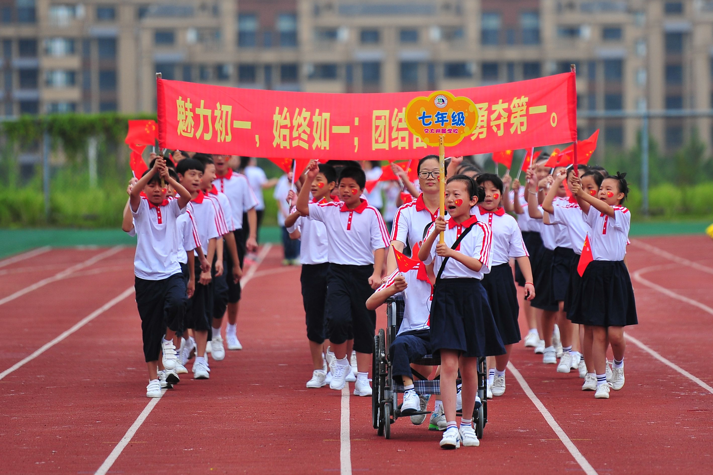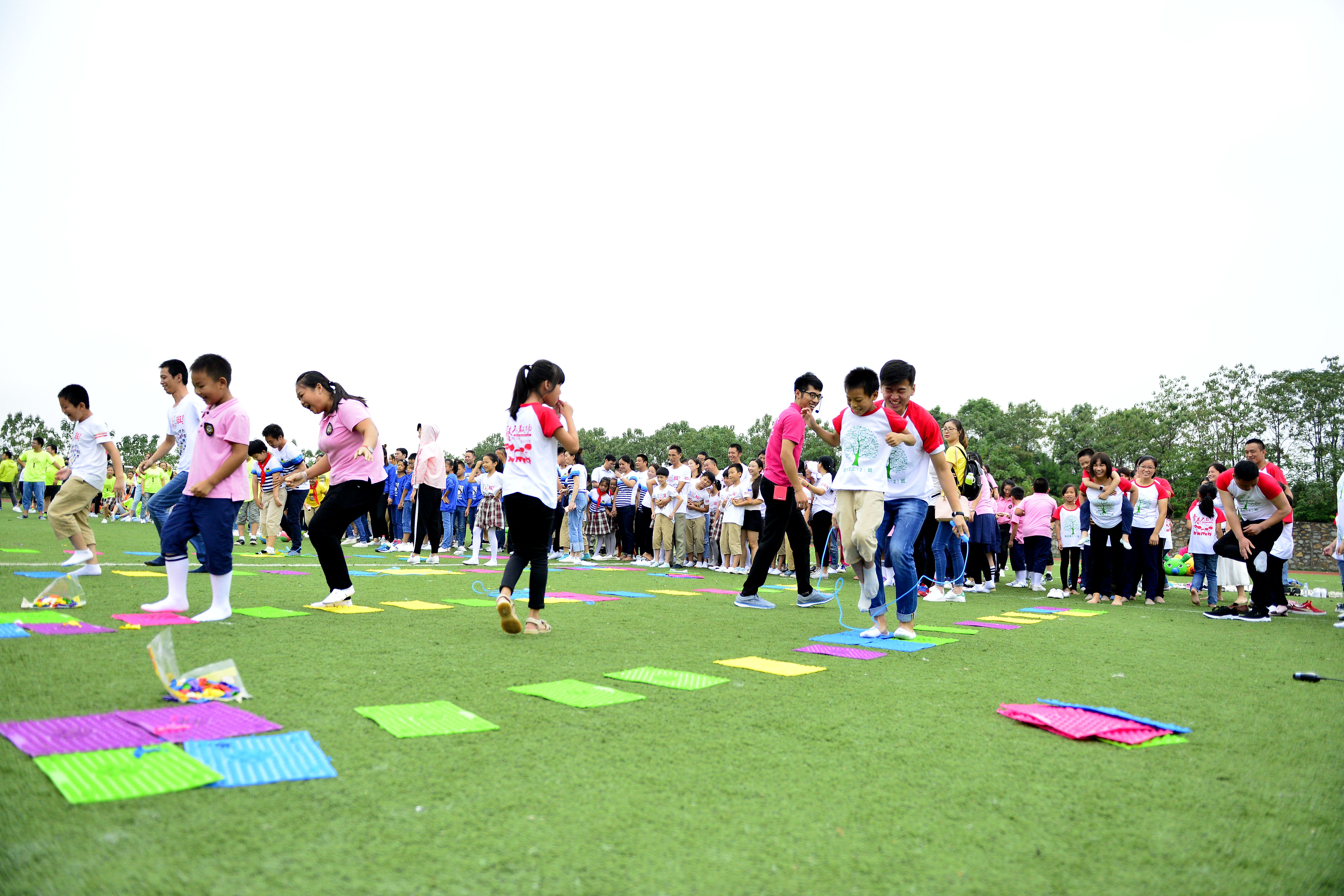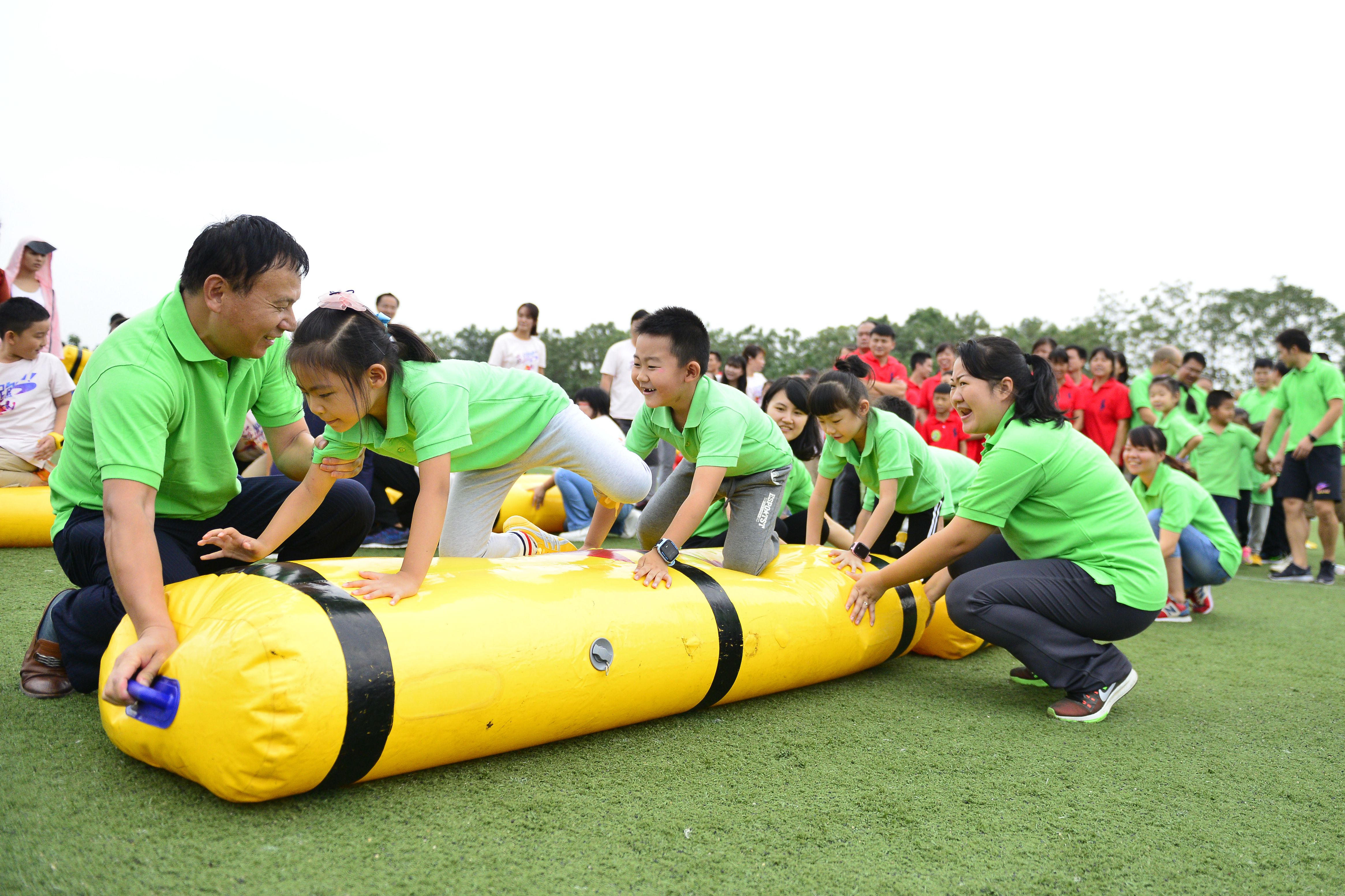 传统的运动会模式,都是一小部分学生跑跳,大多数学生打闹;一小部分学生是运动员,大多数学生晒太阳;孩子们比赛,家长们呐喊。这次运动会是一场全体同学参加的活动,家长们加入进孩子们的队伍,和孩子们一同运动,一同比赛。