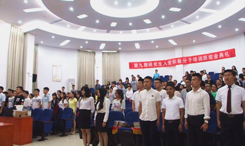 5月18日—6月13日,第9期研究生入党积极分子培训班为期近四个星期的党课培训圆满结束,本次培训得到了学校党校和研究生院党委的大力支持和悉心指导。129名研究生入党积极分子通过理论考试、心得体会、笔记、发言情况等综合考核,最终考核合格125名并评选出优秀学员13名。校党校校长、党委宣传部副部长黄瑜,研究生院党委书记周尔民,院研工办老师出席结业典礼。