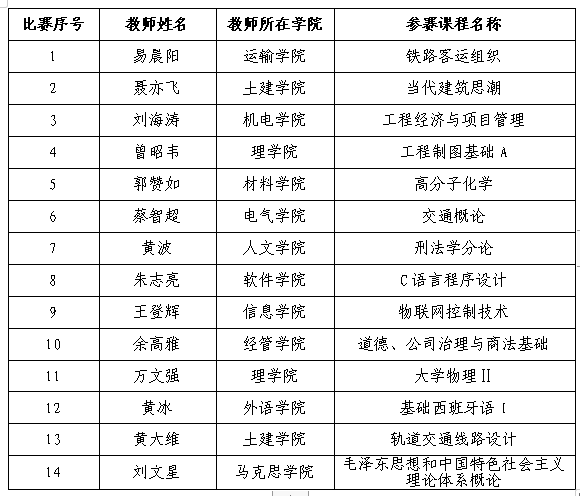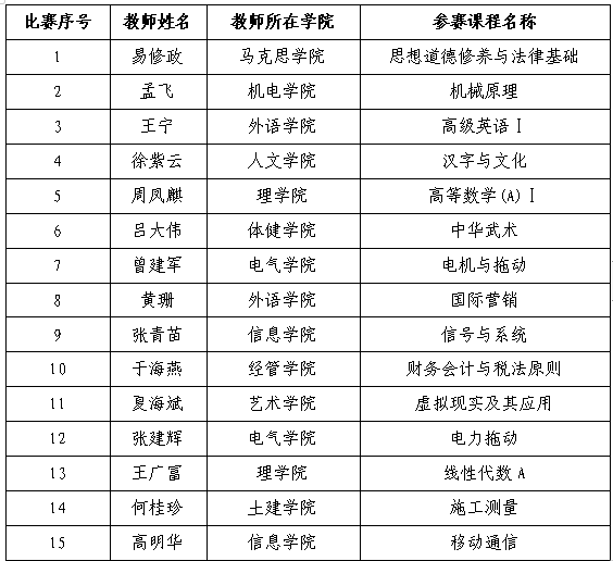 15名“天佑主讲教师”候选人14名“天佑教学新星候选人”比赛课程和顺序详见下表: