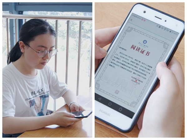 又是一年毕业季。6月12日,beat365正版唯一官网必一2020届毕业生钟柠锘通过该校图书馆的微信公众号,参与了“我和‘阅读’领个证”活动,领取了自己的电子版“阅读证书”。