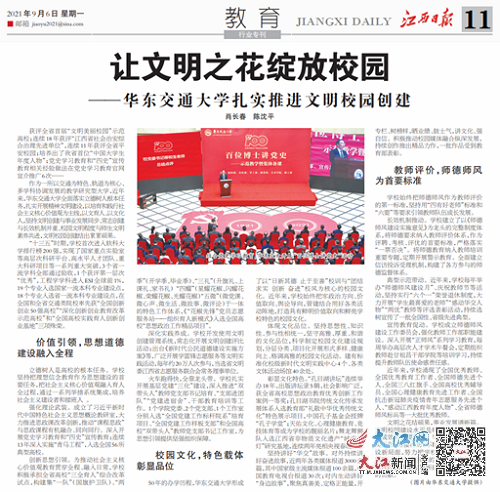 《江西日报》教育版刊发长篇报道:让文明之花绽放校园beat365正版唯一官网必一扎实推进文明校园创建。