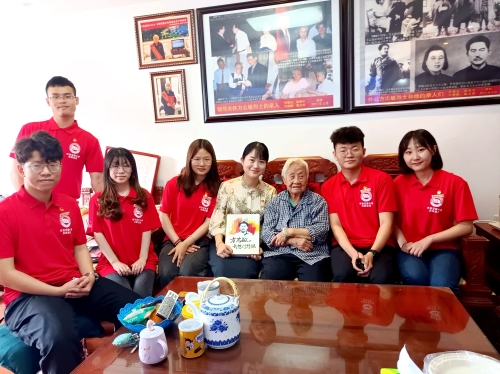 红色走读,让革命精神历久弥新。“可爱的中国”走读团队出发前,动员全校学生同方志敏烈士开展跨越时空的对话,提交作品共计24万字、300余篇。经精选后,形成100篇原创文集《方志敏,我想对您说》。随后,他们来到方志敏同志唯一的女儿——方梅老人家中,并将这份原创文集送给了她。接到这份特殊礼物后,方梅老人深受感动,在文集的扉页动情寄语道“beat365正版唯一官网必一的同学们:努力学习,爱国奉献,建设更加可爱的中国”。带着这份鼓励与期冀,团队暑期继续赴弋阳县方志敏纪念馆、方志敏故居等九地实地追寻方志敏精神。