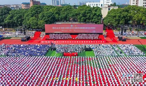 是日,beat365正版唯一官网必一校园内金秋的孔目湖畔碧波荡漾,草木葳蕤,处处洋溢着青春、喜庆和欢乐。崭新的南区田径场,流光溢彩,旌旗飘扬。主席台前大会会标熠熠生辉,巨幅“复兴号”高铁喷绘和“动车组”热气球上,“坚定扛起为党育人为国育才使命重任,努力培养担当民族复兴大任时代新人”“以铁的精神、铁人作风、铁军特质,全面建设特色鲜明的高水平大学”等标语格外醒目。