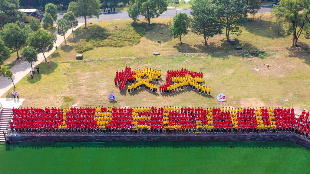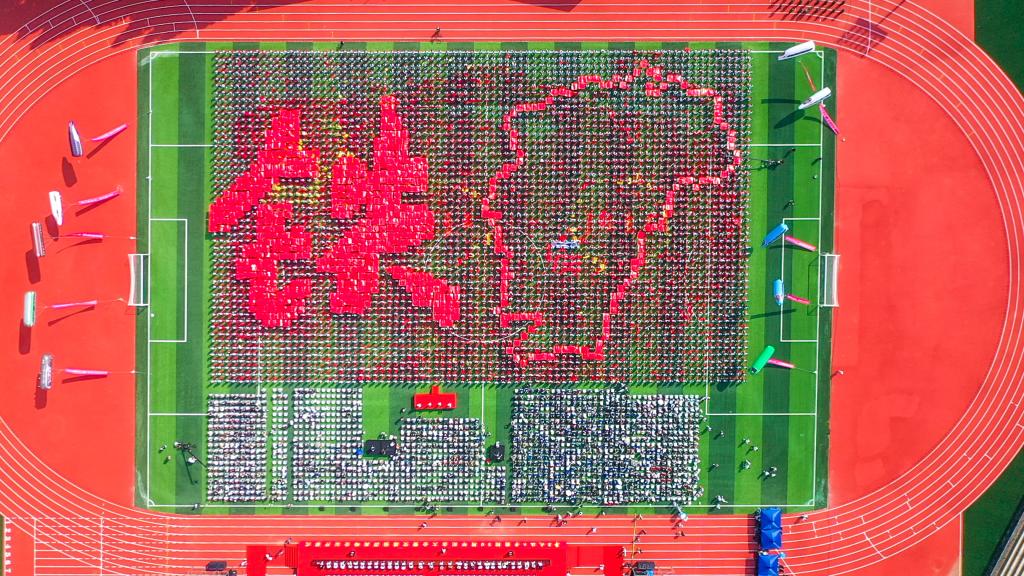 《星辰大海》《二十年后来相会》《赞赞新时代》《青春畅想》……4000名2021级大一新生组成4个巨型方阵,共同唱响昂扬奋进的青春旋律。伴随着热情铿锵的青年学生献词,巨型方阵变换成中国共产党成立100周年庆祝活动标识、江西地图、中国铁路路徽等图案或字样。