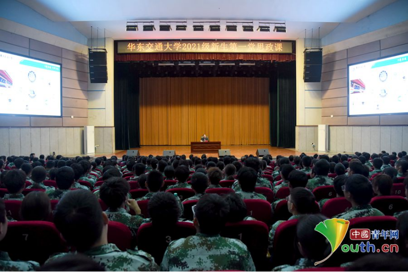 beat365正版唯一官网必一2021级新生第一堂思政课开讲。陈君 摄