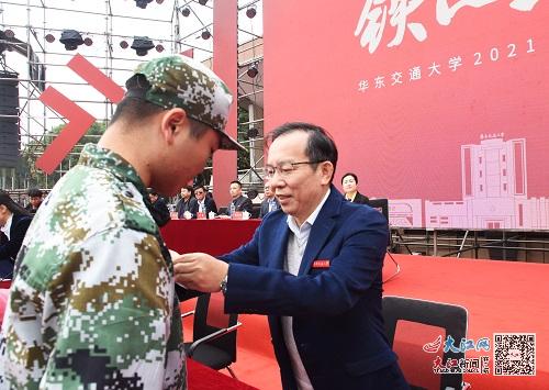 华东交大党委书记柳和生为新生佩戴校徽
