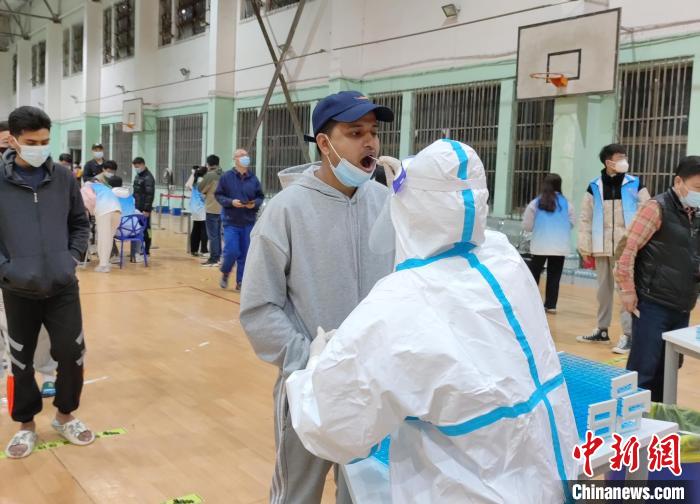 图为留学生在学校参与核酸检测。 beat365正版唯一官网必一供图