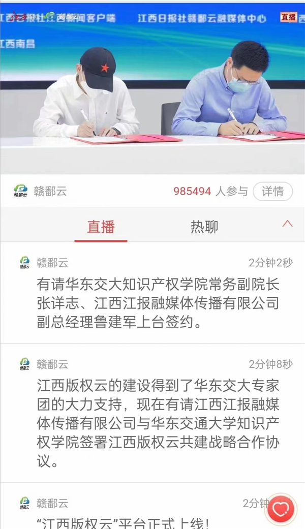 4月21日,江西省知识产权学院与江西省版权局联合发布“2021年江西省打击侵权盗版十大案例”。4月26日,该校知识产权学院专任教师受邀在“2022江西南昌版权保护月”直播间以“文化创新的版权之维——兼谈版权案例、政策、态势与应对”为主题开展线上讲座,在世界知识产权日为听众树立了“版权无处不在”的观念,观看人数超10万人。4月27日,由江西省委宣传部、江西省版权局、江西日报社等单位支撑和打造的“江西版权保护与管理综合服务智慧云平台(江西版权云)”在赣鄱云融媒体中心举行上线仪式,江西江报融媒体传播有限公司与该校知识产权学院签署江西版权云共建战略合作协议,双方将在江西版权云的版权学术研究、版权指数排行研究、版权白皮书发布、版权知识培训、版权论坛、版权展览等功能中发挥核心智力支撑作用,并在江西日报社版权云中心建立专门的学生实习实践基地。(严荷君)