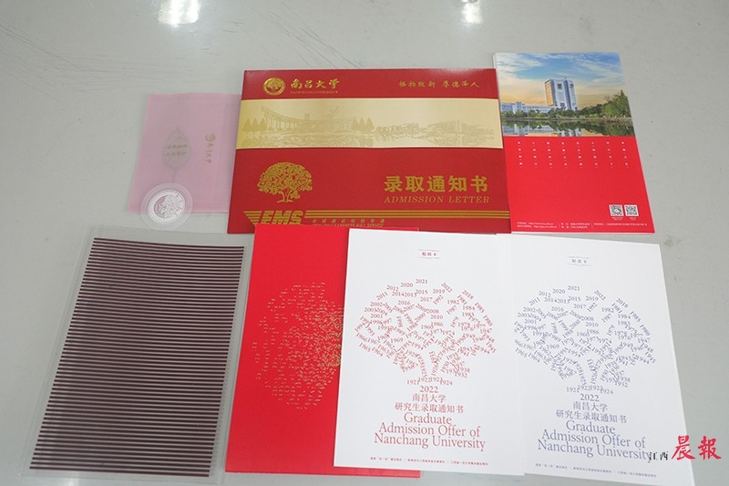 今年南昌大学发放录取通知书的方式依旧是盲盒式——三个版本(分别是中国红、香樟绿和“南大蓝”)的录取通知书随机派发给新生,只有打开后才知道自己收到的是哪一款。