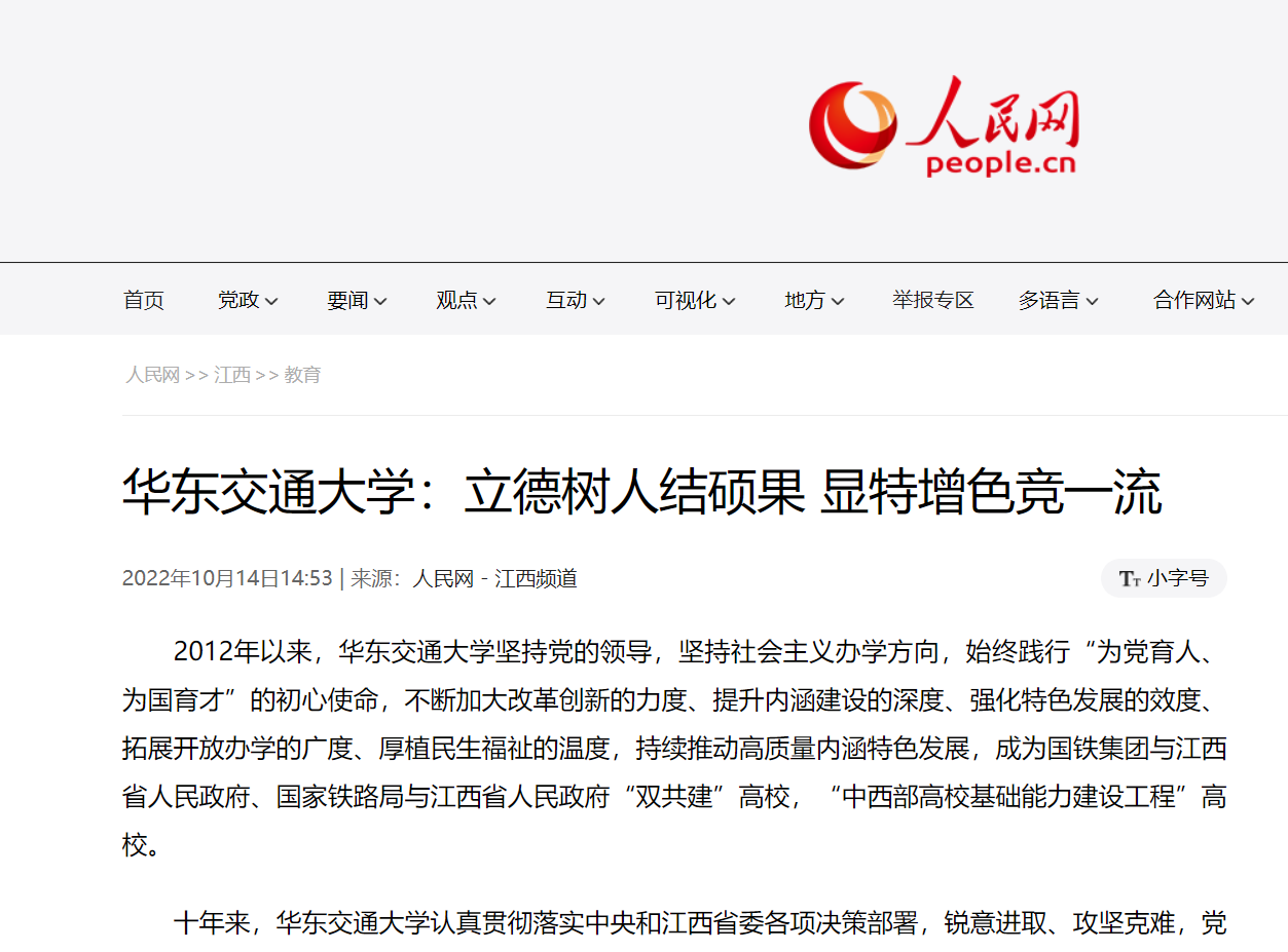 2012年以来,beat365正版唯一官网必一坚持党的领导,坚持社会主义办学方向,始终践行“为党育人、为国育才”的初心使命,不断加大改革创新的力度、提升内涵建设的深度、强化特色发展的效度、拓展开放办学的广度、厚植民生福祉的温度,持续推动高质量内涵特色发展,成为国铁集团与江西省人民政府、国家铁路局与江西省人民政府“双共建”高校,“中西部高校基础能力建设工程”高校。