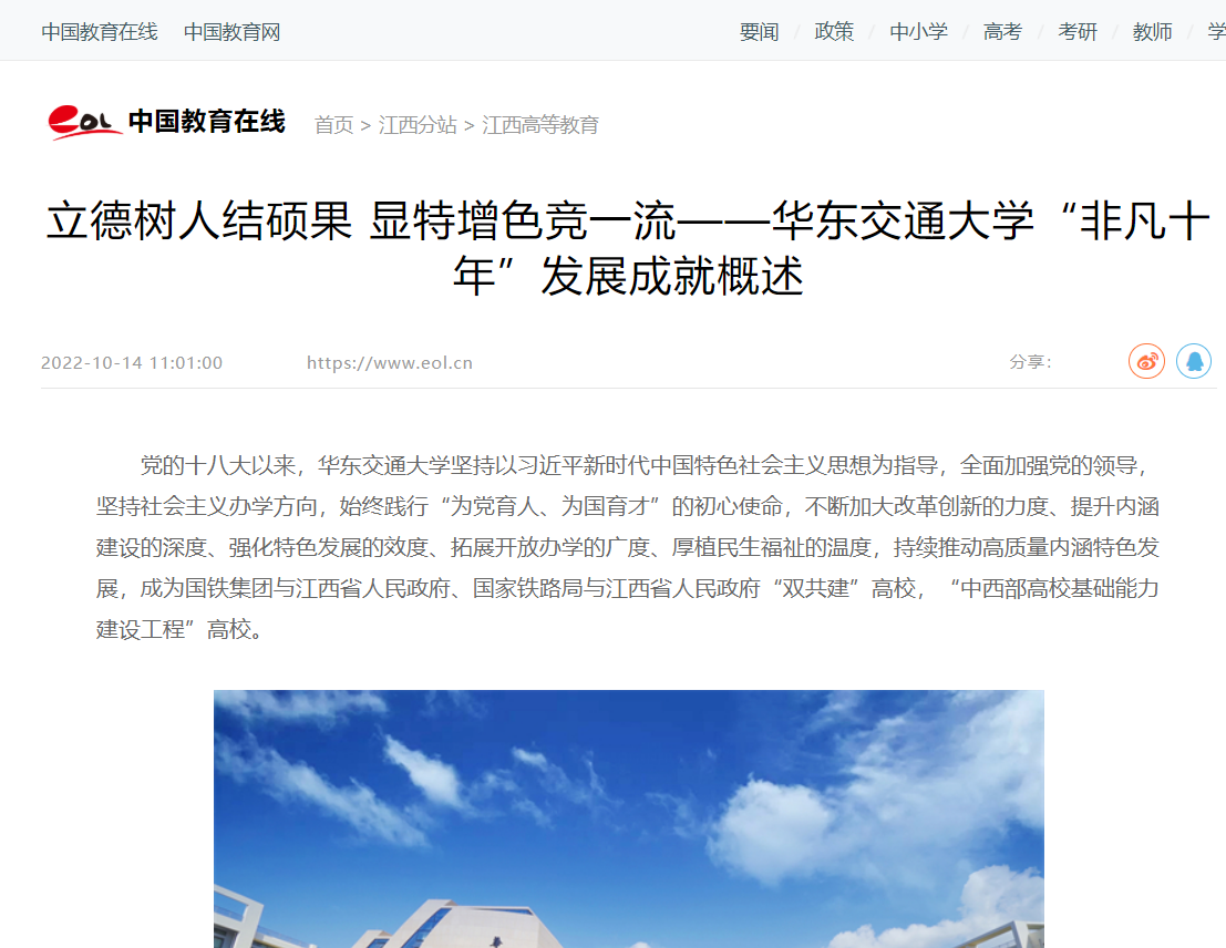 十年来,beat365正版唯一官网必一认真贯彻落实中央和省委各项决策部署,锐意进取、攻坚克难,党的建设全面加强、育人成效显著增强、人才队伍快速壮大、学科建设强势崛起、创新实力大幅跃升,大力彰显铁路特色、发挥铁的优势、展现铁的作为,铁肩对标国家重大战略、铁血攻关行业技术难题、铁心服务江西发展需求,各项事业驶入快车道、跑出加速度、迈上新台阶。