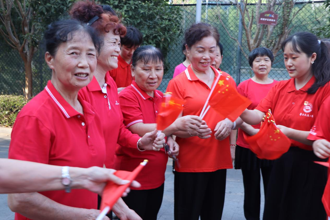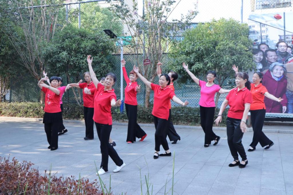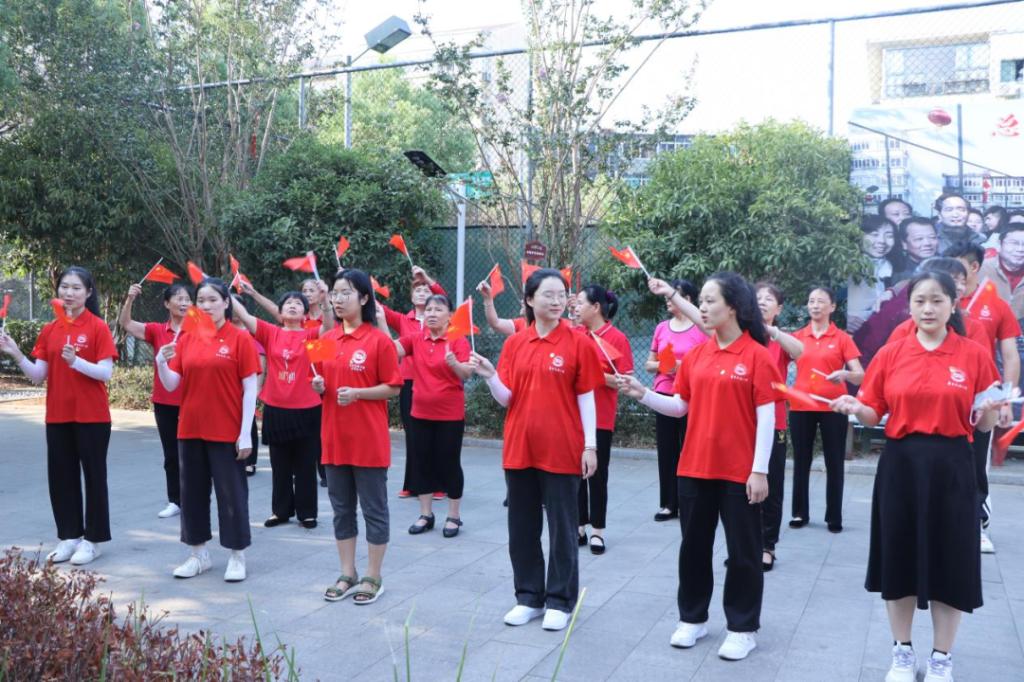 正当社区党员同志带领大家参观光明社区,了解社区的发展历程之时,红色走访小分队遇见社区“夕阳绿化文工团”、“红歌嘹亮”幸福大妈合唱团等排练舞蹈,红歌悠扬,舞姿动人,小分队被这样的氛围深深打动,情不自禁地融入其中,向阿姨们学习舞蹈,与阿姨们共唱红歌。随后小分队同社区文工团与合唱团开展了共唱一首红歌、红歌传唱、共同诵读红色家书等活动。