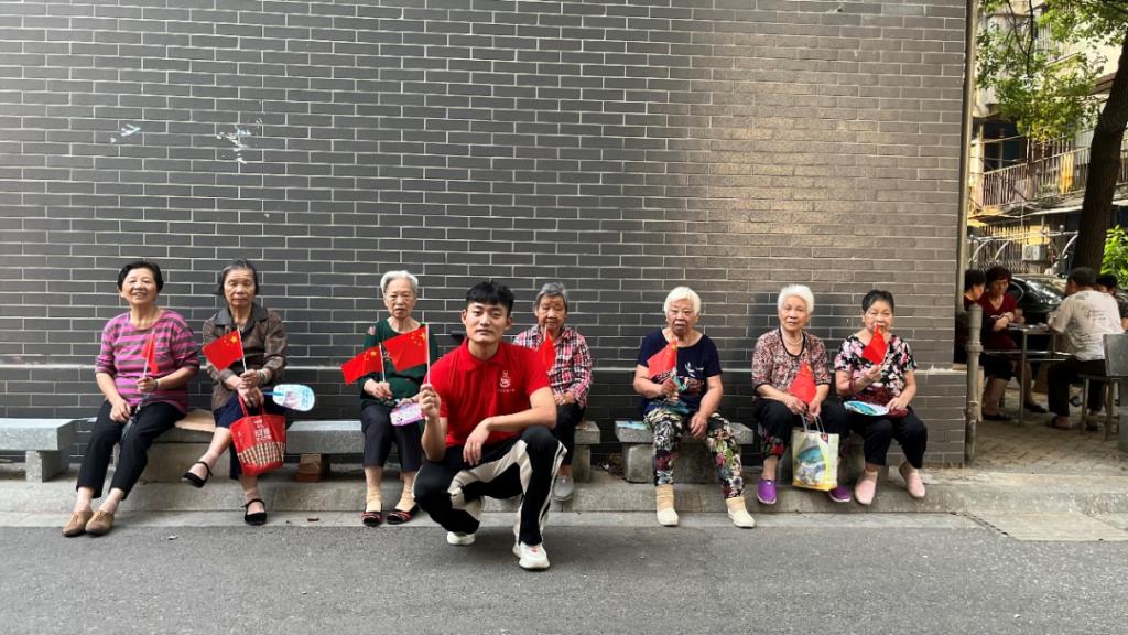 走入社区,率先映入小分队眼帘的是社区广场上一张名为“总书记和我们在一起”的大合照。阳光普照,照片里每个人的笑容都是那样令人感到温暖与幸福,在社区党员同志的介绍下,成员们了解到这张美好合照背后的动人故事。