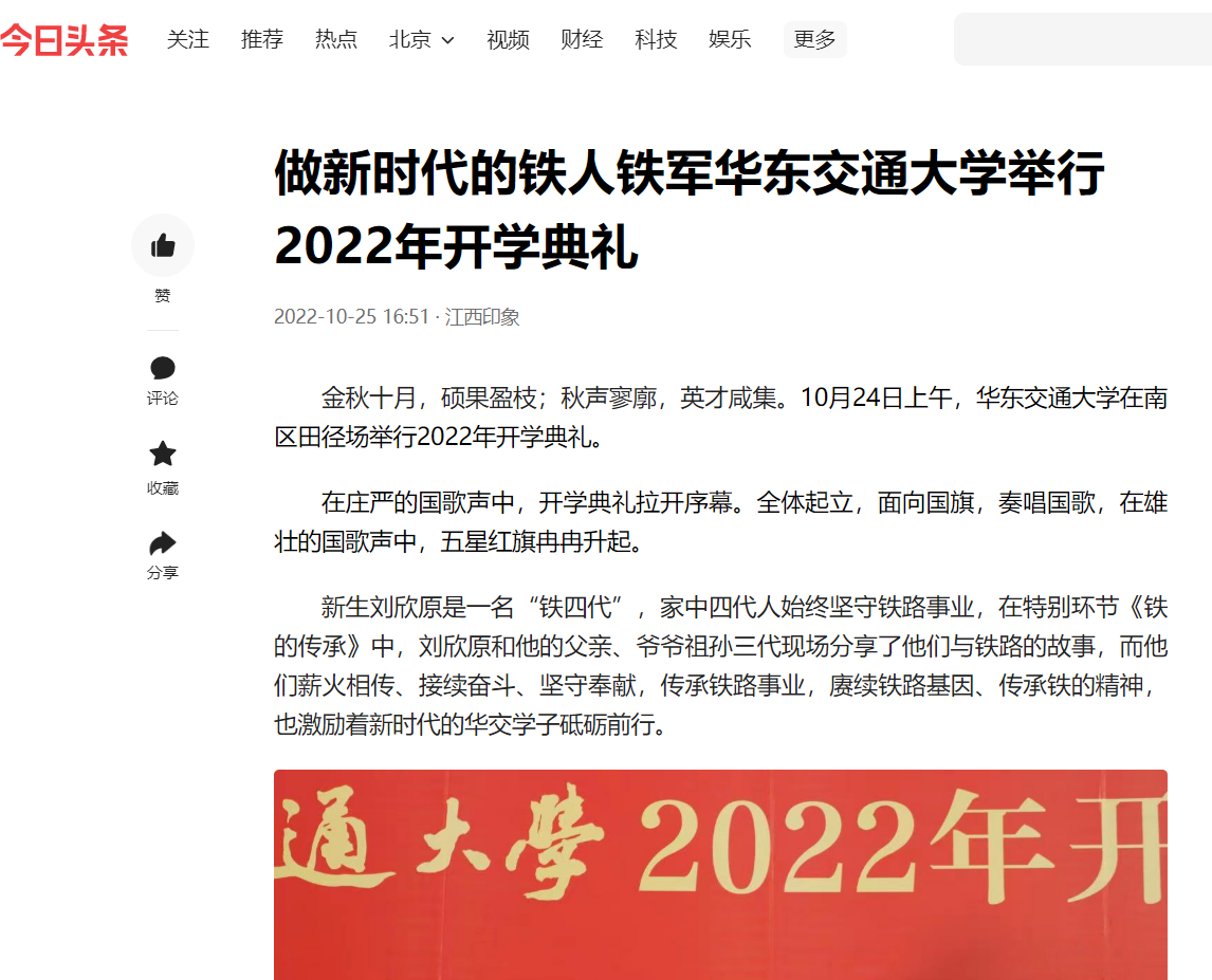新生刘欣原是一名“铁四代”,家中四代人始终坚守铁路事业,在特别环节《铁的传承》中,刘欣原和他的父亲、爷爷祖孙三代现场分享了他们与铁路的故事,而他们薪火相传、接续奋斗、坚守奉献,传承铁路事业,赓续铁路基因、传承铁的精神,也激励着新时代的华交学子砥砺前行。