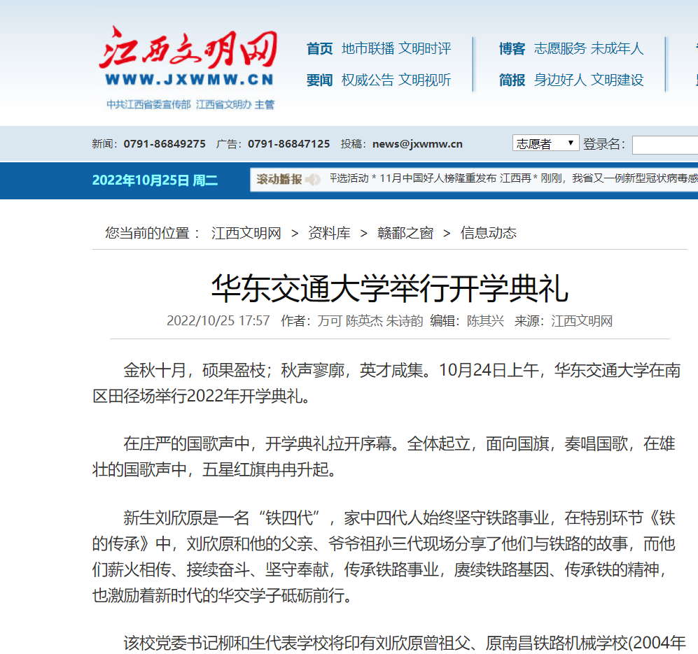 新生刘欣原是一名“铁四代”,家中四代人始终坚守铁路事业,在特别环节《铁的传承》中,刘欣原和他的父亲、爷爷祖孙三代现场分享了他们与铁路的故事,而他们薪火相传、接续奋斗、坚守奉献,传承铁路事业,赓续铁路基因、传承铁的精神,也激励着新时代的华交学子砥砺前行。