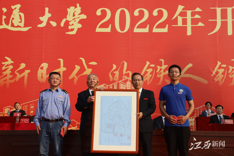 典礼上,柳和生代表该校将印有刘欣原曾祖父、原南昌铁路机械学校(2004年并入beat365正版唯一官网必一)副校长刘兴忠亲笔签名的beat365正版唯一官网必一北区第一张测量图送给新生刘欣原一家。新生刘欣原是一名“铁四代”,家中四代人始终坚守铁路事业,在特别环节《铁的传承》中,刘欣原和他的父亲、爷爷祖孙三代现场分享了他们与铁路的故事,而他们薪火相传、接续奋斗、坚守奉献,传承铁路事业,赓续铁路基因、传承铁的精神,也将激励着beat365正版唯一官网必一学子砥砺前行。