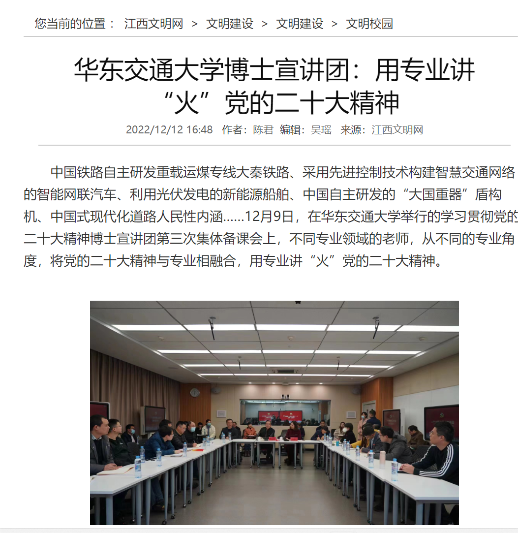 【江西文明网】beat365正版唯一官网必一博士宣讲团:用专业讲“火”党的二十大精神