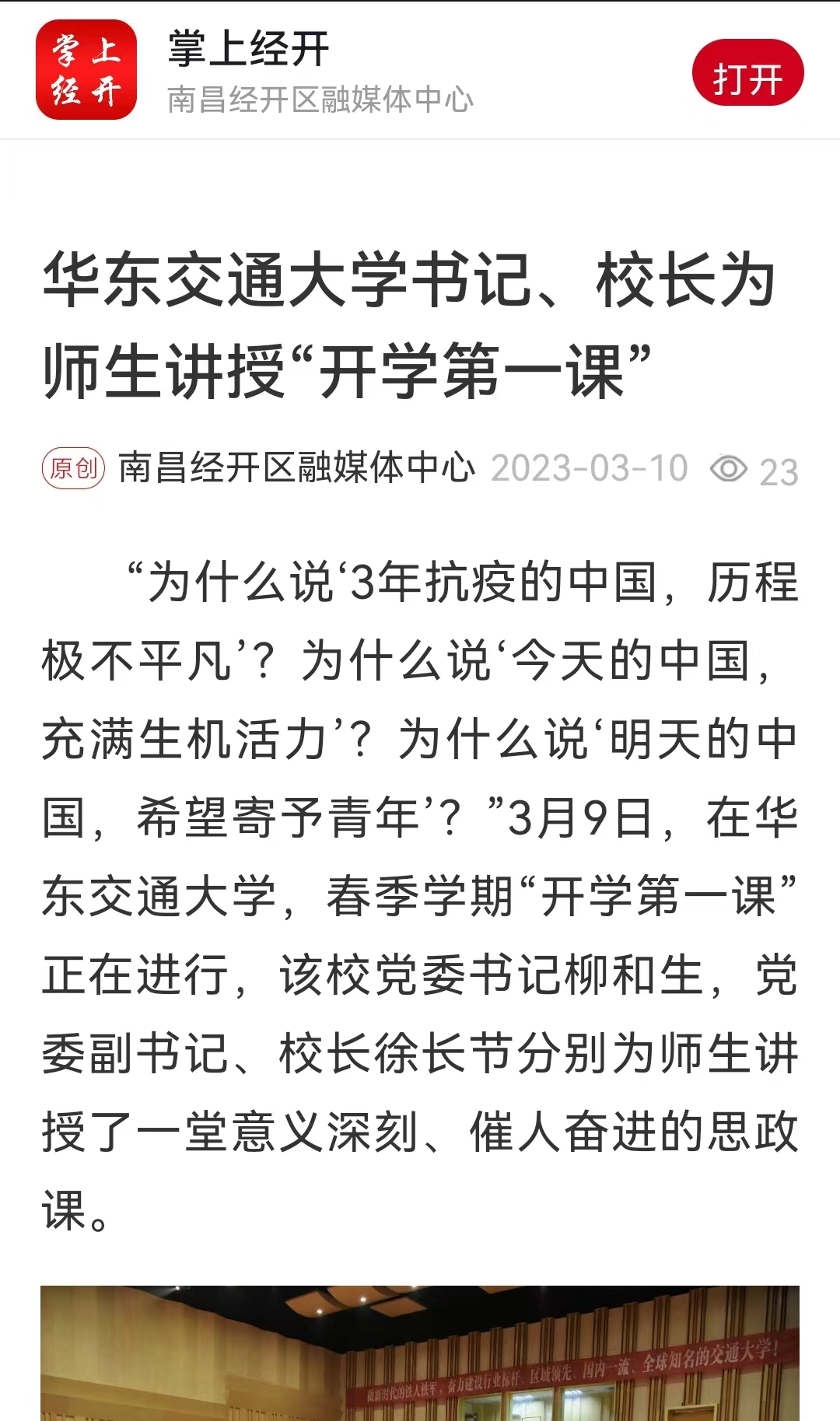 柳和生带领师生共同回顾了3年抗疫的艰辛历程和取得的伟大成果,并通过一系列鲜活的案例和详实的数据,生动讲述了新时代十年以来国家、江西和学校取得的巨大成就。“要勇做‘铁心铸忠诚、铁血报家国、铁肩担使命、铁手创大业’的新时代铁人铁军,以积极向上的奋进心态、锐意进取的奋发状态、勇往直前的奋斗姿态,从春天出发,向着美好的未来奋跃而上,在中国式现代化的壮阔征程中扛起青春责任、彰显青春担当,展现青春力量、谱写青春华章。”柳和生寄语青年师生。