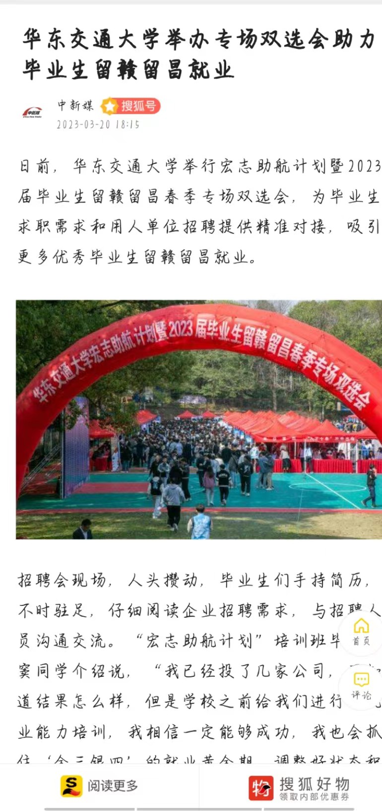 江西省建材集团有限公司人力资源负责人已经收到了50余份简历,他表示:交大的毕业生专业知识掌握扎实、实践能力强、综合素质高,现场招聘效果也很理想,面试交流过程中毕业生们也都表达了未来想留赣留昌的就业意愿。