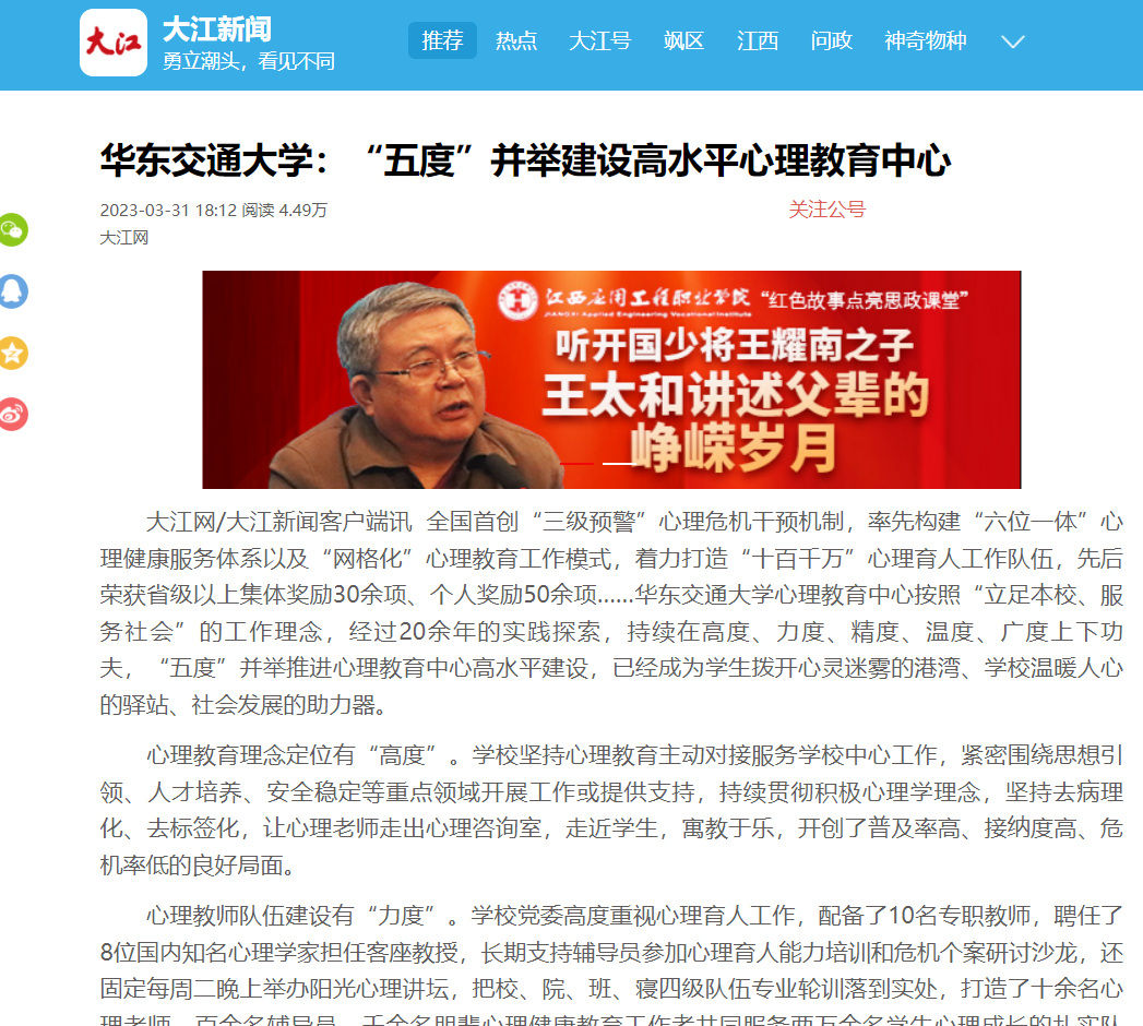 【大江新闻客户端】beat365正版唯一官网必一:“五度”并举建设高水平心理教育中心