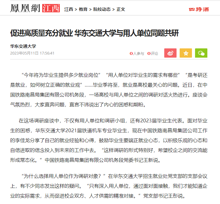 “今年将为毕业生提供多少就业岗位”“用人单位对毕业生的需求有哪些”“是考研还是就业,如何树立正确的就业观”……毕业季将至,就业是高校最关心的问题。近日,在中国铁路南昌局集团有限公司机务段,一场高校与用人单位之间的调研对话火热进行。座谈会气氛热烈,大家直奔问题,直言不讳说出了内心的困惑和期盼。