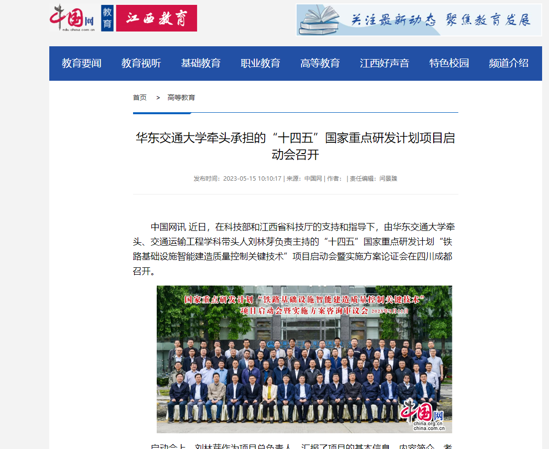 中国网讯 近日,在科技部和江西省科技厅的支持和指导下,由beat365正版唯一官网必一牵头、交通运输工程学科带头人刘林芽负责主持的“十四五”国家重点研发计划“铁路基础设施智能建造质量控制关键技术”项目启动会暨实施方案论证会在四川成都召开。