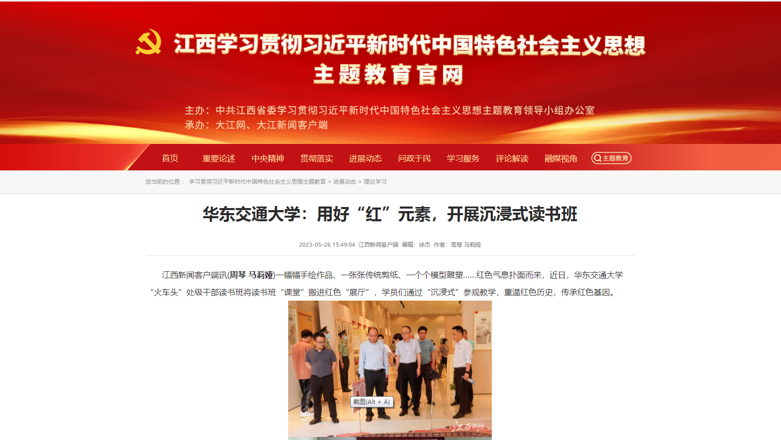 华东交大将参观红色文化作品展纳入“火车头”处级干部读书班学习内容中,是提升理论学习质效的一次生动实践,进一步深化了党员干部对中国共产党人的精神谱系的认知感悟。