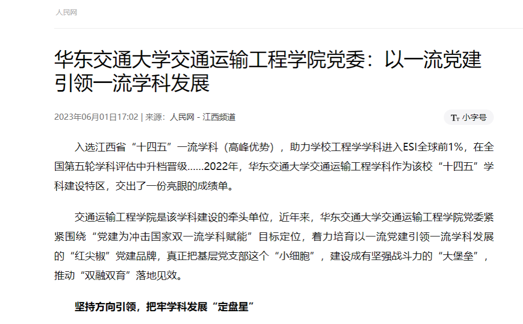 入选江西省“十四五”一流学科(高峰优势),助力学校工程学学科进入ESI全球前1%,在全国第五轮学科评估中升档晋级……2022年,beat365正版唯一官网必一交通运输工程学科作为该校“十四五”学科建设特区,交出了一份亮眼的成绩单。