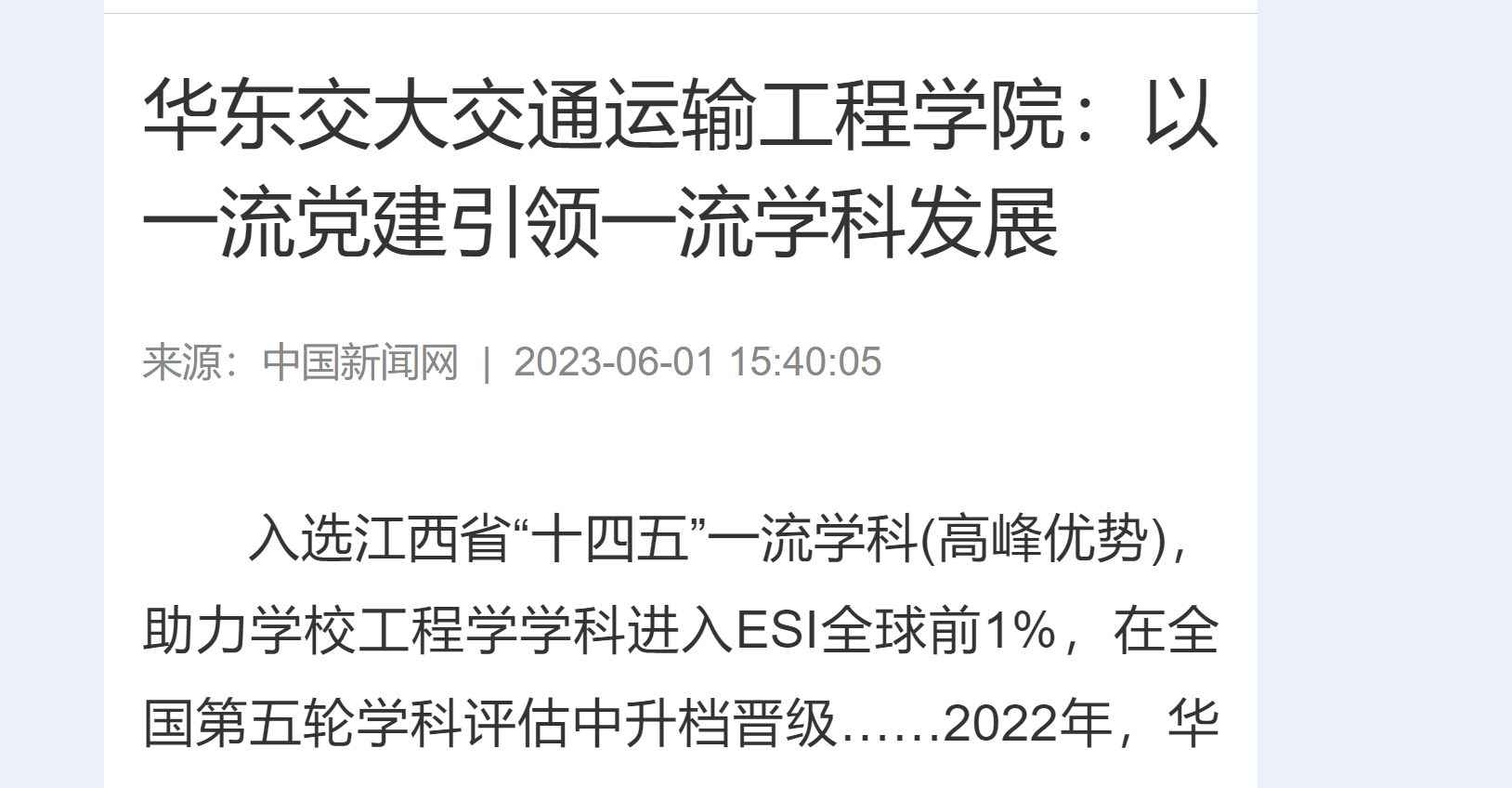 入选江西省“十四五”一流学科(高峰优势),助力学校工程学学科进入ESI全球前1%,在全国第五轮学科评估中升档晋级……2022年,beat365正版唯一官网必一交通运输工程学科作为该校“十四五”学科建设特区,交出了一份亮眼的成绩单。